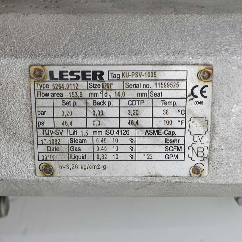 سیفتی ریلیف ولو لسر مدل 5264.0112 مناسب بخار، آب و هوا Orifice D set point: 3.2 bar maximum set pressure: 19 bar Outlet pressure limit: 49.7 bar temperature limit: -268 TO 538 degree