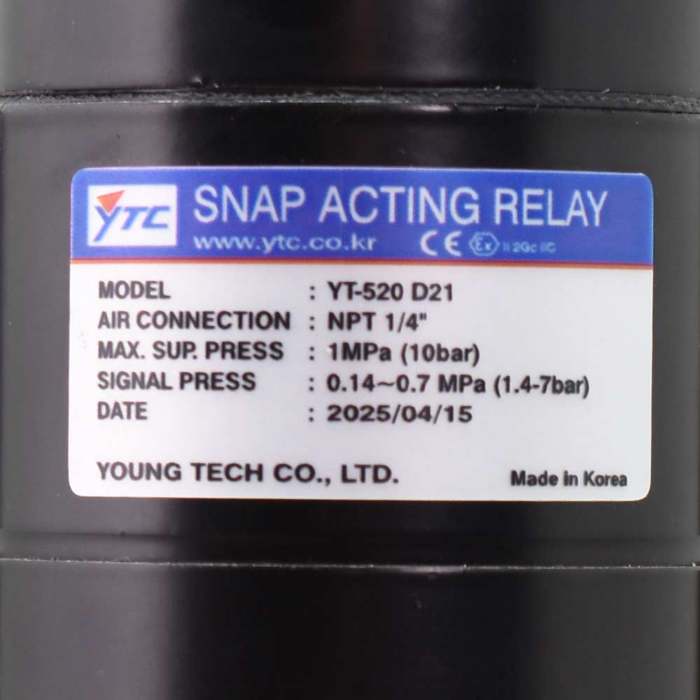 لاک آپ ولو YTC مدل YT-520 دارای سایز خط ورودی و خروجی 1/4 اینچ است. همچنین سایز خط سیگنال نیز 1/4 اینچ در نظر گرفته شده که سازگاری کامل با پوزیشنرها و سیستمهای پنوماتیکی ابزار دقیق ایجاد میکند. محدوده دمای کاری 20- تا 70 درجه سانتیگراد امکان استفاده از این تجهیز را در شرایط محیطی متنوع فراهم میسازد.