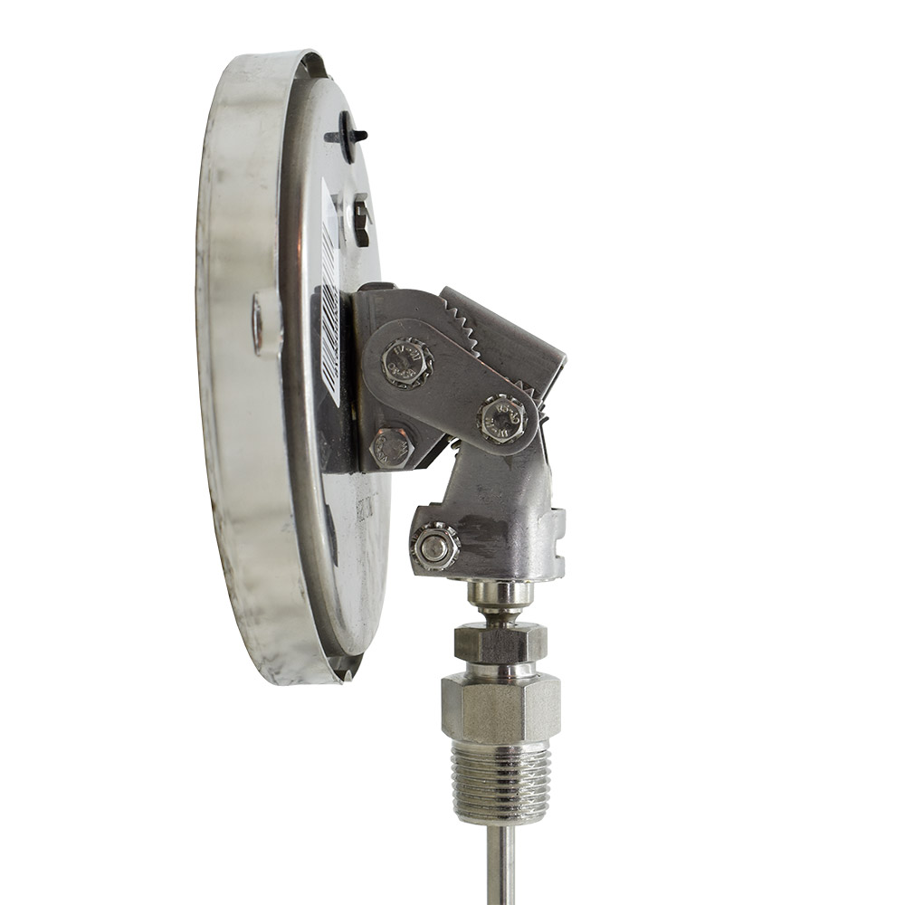این مدل دارای اتصال رزوهای سایز 1/2 اینچ است. اتصال استاندارد، نصب آسان روی تجهیزات و خطوط فرآیندی را ممکن میسازد. این ترمومتر بدون ترموول عرضه میشود و در صورت نیاز، میتوان ترموول مناسب را بهصورت جداگانه استفاده کرد.