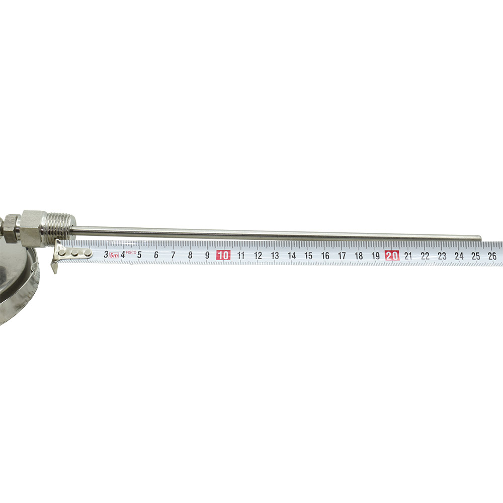 ساقه ترمومتر از جنس استیل ساخته شده است و طول آن 250 میلیمتر میباشد. ضخامت 6 میلیمتری ساقه، استحکام مکانیکی مناسبی فراهم میکند. بدنه ترمومتر نیز از استیل تولید شده و مقاومت خوبی در برابر شرایط محیطی صنعتی دارد.