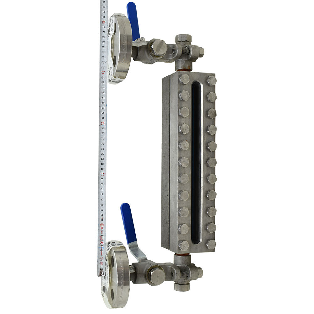 لول گیج تک Section برند SIMER ایتالیا نوع Transparent مناسب سیالات تیره رنگ و کدر، خورنده و دما بالا فاصله C to C (مرکز به مرکز) فلنج های لول گیج: 45 سانتی متر